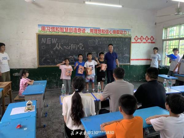 7月6日,出发前,milan米兰官网_米兰(中国)团委书记陈荟芸叮嘱志愿者:将青春汗水挥洒在祖国的大地上,让激昂的青春在新征程中闪光,将爱国热情和成长成才的强烈愿望转化为实际行动,将一颗热忱的心奉献给支教志愿服务活动。12名志愿者怀着真诚和热爱,在指导老师唐浩然的带领下来到了黄石市阳新县木港镇木港小学,受到了milan米兰官网_米兰(中国)人文学部党总支书记、子山村驻村工作队队长赵卫军,木港镇团委书记曹宇轩,木港镇团委副书记万亮,木港小学校长吴平仁的热情接待。