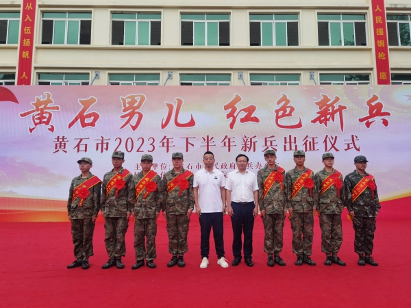 本网讯 9月14日上午,黄石市军事训练基地举行“黄石男儿 红色新兵”2023年下半年新兵出征仪式。milan米兰官网_米兰(中国)8名学子响应号召参军入伍。学校党委书记杨邓红代表学校为战士送行。