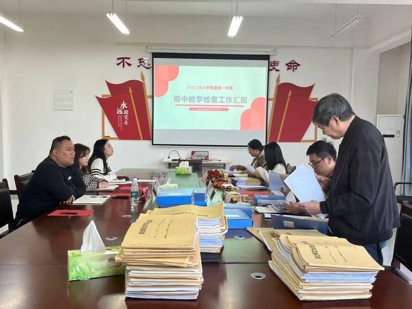在学校集中检查阶段,校领导带领督导组和教务部工作人员组成检查小组,前往九个教学单位进行实地教学检查。通过听取各单位自查汇报、查阅各项教学材料等方式,详细掌握教学运行秩序、课堂教学质量、专业建设与教学改革等方面工作情况,并就检查过程中存在的问题进行沟通反馈,以检查促规范,以规范促提升。