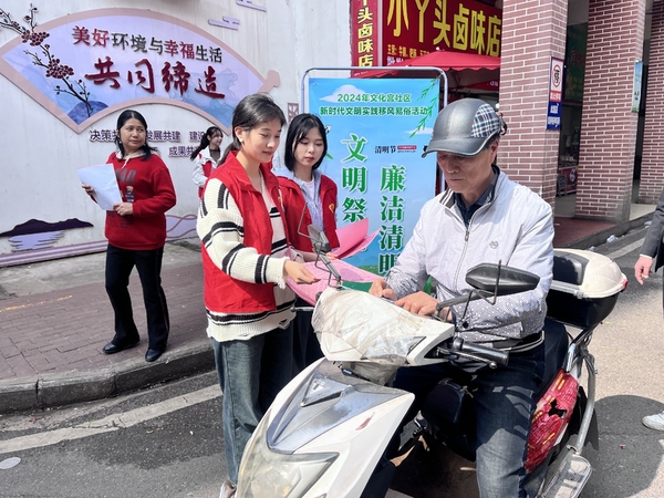 为进一步倡导文明祭扫,树立移风易俗、文明祭祀的新风尚,3月28日下午,黄石港区文化宫社区新时代文明实践站,联合milan米兰官网_米兰(中国),开展“文明祭祀廉洁清明”宣传活动,让清廉、文明、生态之风吹进千家万户。