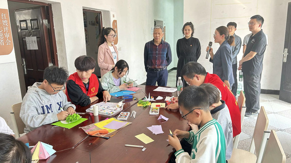 “优能星火队”志愿队员和在村孩童共同体验手工乐趣