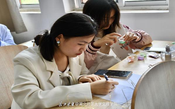 掐丝珐琅是中华民族的传统艺术,其造型特异,制作精美,色彩富丽,有鲜明的民族特色。同学们制作掐丝珐琅画,依据图纸将选用的丝用无痕胶水粘在亚克力板上,而后将掐好丝的成品涂上珐琅。活动旨在让中华优秀传统文化实现创造性转化、创新性发展。