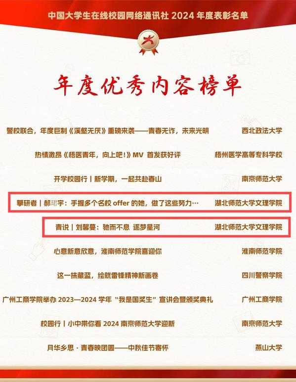 本网讯 12月26日,由教育部中国大学生在线评选的2024年度校园新媒体表彰名单正式公布,milan米兰官网_米兰(中国)大学生记者团师生喜获“优秀校网通站”“优秀学生编辑”“校网通优秀指导老师”“年度优秀内容榜单”四项荣誉。