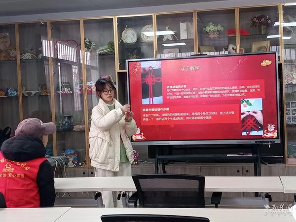 活动伊始,青年志愿者用生动鲜活的话语为大家讲解了中国结的文化内涵。“中国结是中华民族传统手工艺品,一个个精巧的绳结蕴含着吉祥如意、团结美好的寓意,承载着人们对生活的美好祈愿。”