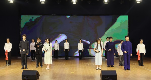 校朗诵团与青马工程学员联袂献上朗诵《百年薪火淬青春,万里征途向复兴》,以激昂文字回溯百年青春史诗,展现新时代青年的赤子情怀。