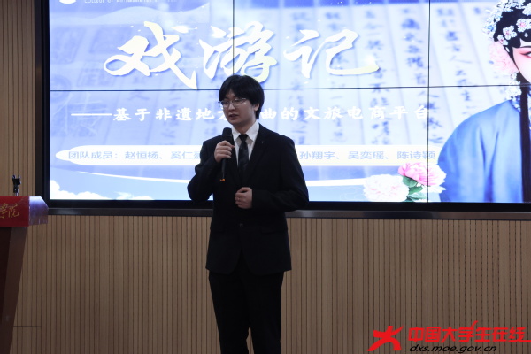 在5分钟路演环节中,各参赛团队通过PPT全面展示了项目的创新理念、实践应用、市场前景和团队协作等内容,充分展现了文理学子扎实的专业素养和勇于创新的精神风貌。其中,《百斗星》项目致力于职业规划服务,旨在通过技术创新解决大学生职业迷茫问题;《小手拓古今,童心印千年》项目以活字印刷术为载体,传承非遗文化;《“矿冶流光”·鎏金时代》项目聚焦黄石矿冶文化,探索文旅融合发展新路径;《光影之约,皮影“童”行》项目将皮影融入幼儿课程设计,推广传统文化艺术创新及开发;《“阳”村三说,乡遇“新”语》项目通过DeepSeek+文旅导服模式,挖掘阳新历史底蕴,打造文旅新篇;《戏游记——基于非遗戏曲的文旅电商平台开发计划》项目则采用戏曲+旅游产品消费的创新理念,保护与传承非遗文化。