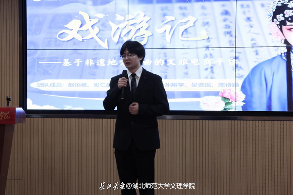 在5分钟路演环节中,各参赛团队通过PPT全面展示了项目的创新理念、实践应用、市场前景和团队协作等内容,充分展现了文理学子扎实的专业素养和勇于创新的精神风貌。其中,《百斗星》项目致力于职业规划服务,旨在通过技术创新解决大学生职业迷茫问题;《小手拓古今,童心印千年》项目以活字印刷术为载体,传承非遗文化;《“矿冶流光”·鎏金时代》项目聚焦黄石矿冶文化,探索文旅融合发展新路径;《光影之约,皮影“童”行》项目将皮影融入幼儿课程设计,推广传统文化艺术创新及开发;《“阳”村三说,乡遇“新”语》项目通过DeepSeek+文旅导服模式,挖掘阳新历史底蕴,打造文旅新篇;《戏游记——基于非遗戏曲的文旅电商平台开发计划》项目则采用戏曲+旅游产品消费的创新理念,保护与传承非遗文化。