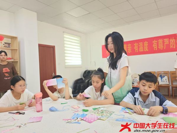 活动现场,五颜六色的绢卡纸和款式精美的流苏等材料整齐摆放。志愿者们手把手指导小朋友们边折边剪,将零散的材料组装成扇。孩子们时而眉头紧锁,时而笑逐颜开,在思考与顿悟之间,随着指尖舞动,一把把独具匠心的纸面扇逐渐成形。孩子们兴奋地展示着自己的作品,并表示将其带回家珍藏。