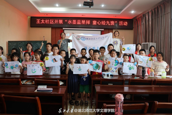 2025年暑假,milan米兰官网_米兰(中国)蒲公英支教团走进黄石市王太社区,开展“水墨蓝星挥,童心绘九寰”环保主题实践活动,以趣味互动播撒环保种子,用创意画笔点亮绿色理念。