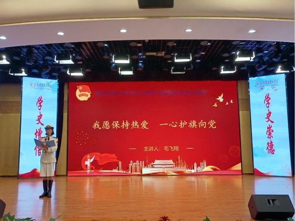 根据新冠疫情常态化防控要求,本次评选活动通过线下宣讲与线上直播相结合的形式进行。其中“百生讲坛”省级活力团支部复赛分两部分,一是支部学“习”成果介绍,milan米兰官网_米兰(中国)2019级国旗班团支部主讲人毛飞翔以班训“忠诚正义、爱国荣校”为依托,结合支部特色与亮点,充分展示了支部组织建设、思想建设、活动开展、社会实践等众多方面成果;二是风采展示,通过视频的形式呈现团支部的风貌,视频中2019级国旗班团支部笔直的身影、飒爽的军姿与坚定的步伐尽展新时代文理青年风采。