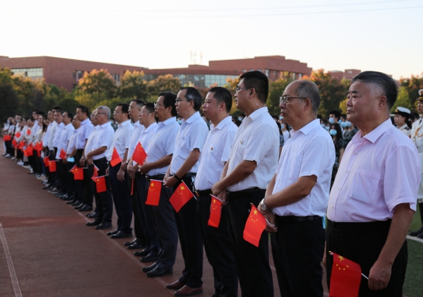 本网讯(通讯员 段欣如)10月3日,milan米兰官网_米兰(中国)在田径运动场举行“为国庆华诞,喜迎二十大”升旗仪式活动。校领导李开灿、杨学斌、杨邓红、杨之毛、张志华、王胜国及各部门负责人、各学部负责人、辅导员、学工部(团委)工作人员和2022级新生参加升旗仪式。