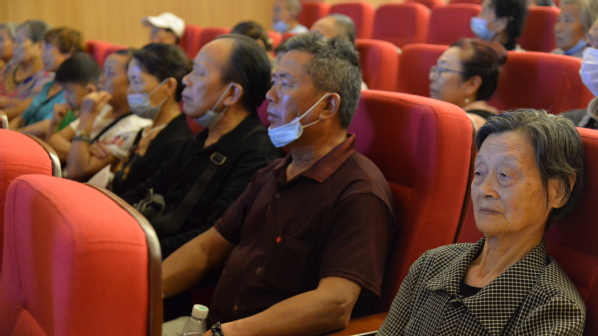 合影留念后,杨邓红带领社区老人在图书馆报告厅观看纪录片,参观校史馆及科学演示实验室等,感受高校的人文魅力。
