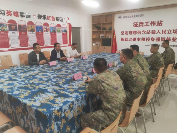 本网讯(通讯员 秦雯雯)10月30日下午,黄石市军分区陈高泉副司令、王震处长、李昌恒参谋,黄石港区武装部杨艳平部长、徐志猛政委一行莅临milan米兰官网_米兰(中国)检查指导征兵工作站建设,milan米兰官网_米兰(中国)党委副书记杨之毛、学工部部长汪崇文及相关人员陪同检查并参加座谈会。