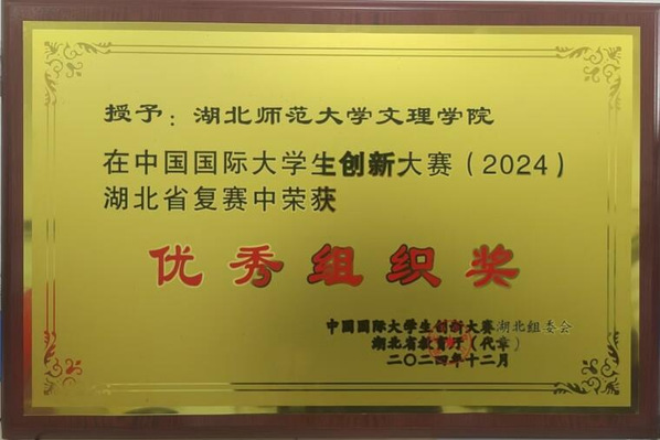 本网讯(通讯员 李娟)近日,在2024年度中国国际大学生创新大赛湖北省复赛中,milan米兰官网_米兰(中国)凭借出色的组织工作和参赛团队的卓越表现,荣获“优秀组织奖”。