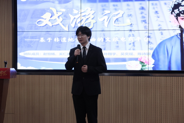5分钟路演环节中,各参赛团队通过PPT全面展示了项目的创新理念、实践应用、市场前景和团队协作等内容,充分展现了文理学子扎实的专业素养和勇于创新的精神风貌。其中,《百斗星》项目致力于职业规划服务,旨在通过技术创新解决大学生职业迷茫问题;《小手拓古今,童心印千年》项目以活字印刷术为载体,传承非遗文化;《矿冶流光·鎏金时代》项目聚焦黄石矿冶文化,探索文旅融合发展新路径《光影之约,皮影“童”行》项目将皮影融入幼儿课程设计,推广传统文化艺术创新及开发;《“阳”村三说,乡遇“新”语》项目通过DeepSeek+文旅导服模式,挖掘阳新历史底蕴,打造文旅新篇;《戏游记——基于非遗戏曲的文旅电商平台开发计划》项目采用戏曲+旅游产品消费的创新理念,保护与传承非遗文化。