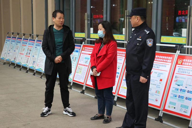 活动采取线上与线下相结合的方式开展。线上宣传主要通过各类宣传画册、动画宣传片等素材进行展播投放,同时在学校微信群、公众号等新媒介推送转发反恐、反邪教、境外非政府组织管理、禁毒宣传教育等系列短片和《国家安全法》《反恐怖主义法》《反间谍法》等法律知识。