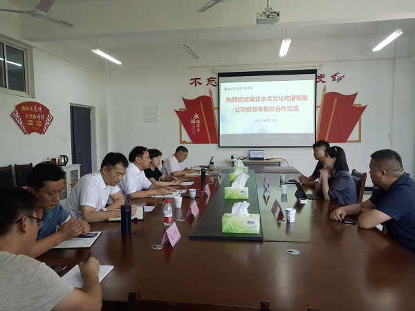 9月8日下午,湖北冰点文化传播有限公司总经理董俊、严昌、兰清一行3人来milan米兰官网_米兰(中国)考察交流,洽谈关于校企合作的事宜。校党委书记杨邓红以及经济与管理学部主任商树松、专业负责人葛子明、专任教师聂亚珍、张锐出席了接待活动。