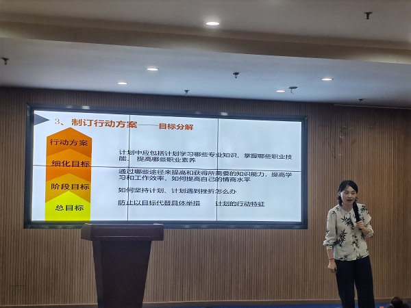 凡事预则立,不预则废”,边婷婷老师从学生的角度分析,结合多年大学生就业指导案例及工作经验,分别从为什么要做职业生涯规划、职业目标的确立等方面进行讲解,说明了职业生涯规划的重要性,利用真实案例结合自身体会,教会同学们客观分析自己的核心潜能,正确认识自己的长处和优势,结合个人实际情况确定适合自己的职业方向,并努力提升自己的专业技能和职业本领,通过自身的奋斗和拼搏去实现自己的梦想。