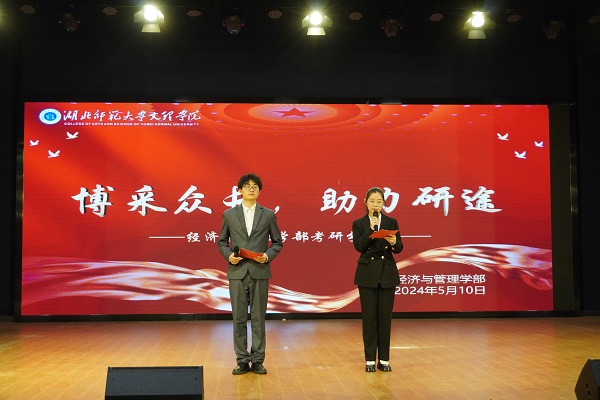 了给备考学子提供宝贵经验,帮助他们更好地应对考研挑战,经济与管理学部于510日在学术交流中心举办了“博采众长,助力研途”考研分享会。本次分享会面向经管学部全体同学展开,学工办副主任吕彩云、团总支书记姜希望、辅导员郑莎莎、专任教师库鑫鑫出席了本次活动