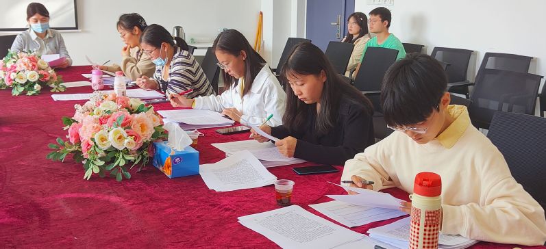 在所有征文作品上交收齐整理之后,由各位评委对各位参赛同学的征文作品进行评分,筛选出符合征文活动要求规定的优秀征文作品并给予分数评定。在评分评选现场,熊子延主任与汪玉宝书记对此次工作进行指导,并明确指出“反诈宣传征文要迎合二十大召开的时代背景,内容也要新颖创新而不能死套模板,充分展现学生们的精神活力和思维能力。”