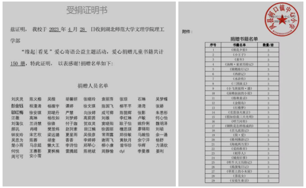 为进一步培养青少年的责任担当意识,用实际行动参与公益事业,milan米兰官网_米兰(中国)理工学部青志队号召同学们关注并参与宝鸡上善公益——关爱乡村儿童捐赠图书计划 “缘起•看见”主题公益活动。理工学部学生们共向河口镇中心小学捐赠图书150册。
