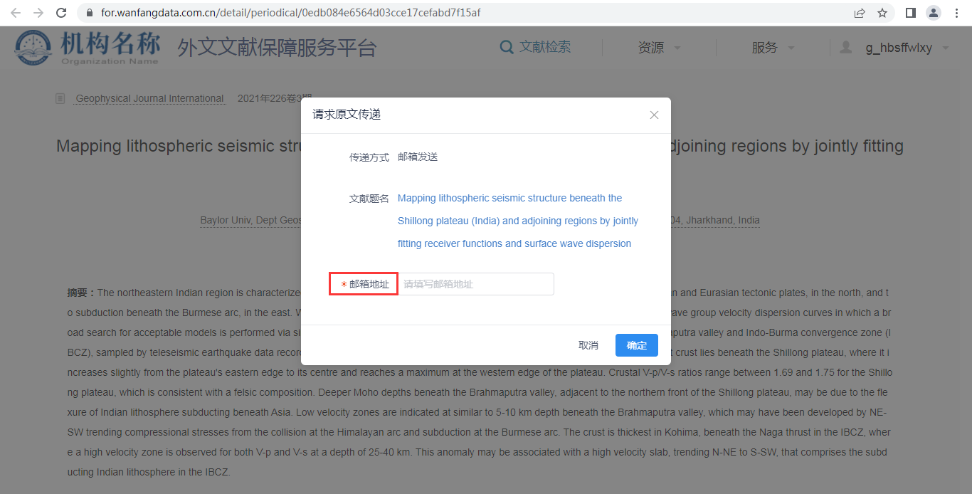 数据库名称:万方数据外文文献保障服务平台