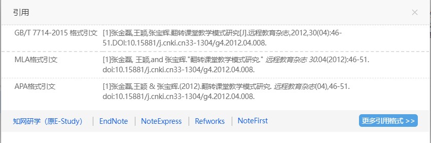 总库检索后,点击各资源类型名称,下方的检索结果区即为该资源类型文献。