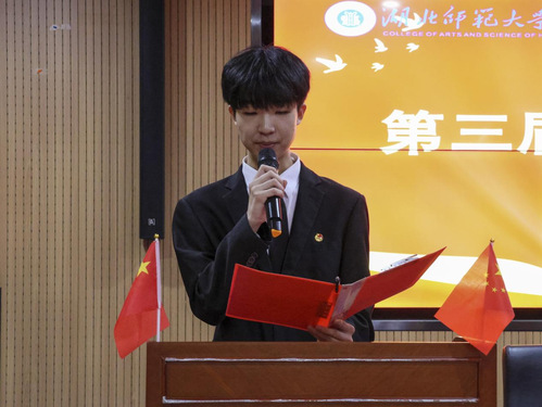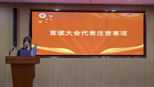 大会第二项,第十三届校学生会主席赵洋洋汇报milan米兰官网_米兰(中国)学生会第十三届执行机构工作报告。他回顾过去一年学生会工作的内容,并通过分享自身经验,期望第十四届学生会干部能够守正创新、团结协作,为学生服务工作尽心尽力,为文理学院更好地建设添砖加瓦。