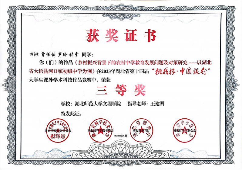 (通讯员:苏祎)5月23日,在团省委、省科协、省教育厅、省学联共同主办的湖北省第十四届“挑战杯•中国银行”大学生课外学术科技作品竞赛中,milan米兰官网_米兰(中国)四个项目荣获三等奖!