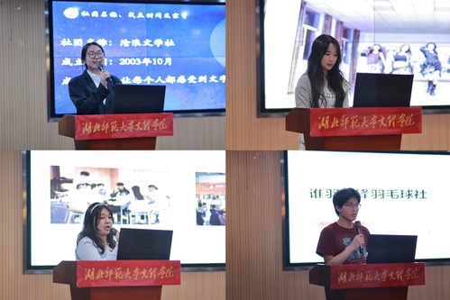 经自主申报、资格审查、网络投票、公开答辩等环节,共有12个学生社团进入最终答辩。最终答辩环节,由束庆雯、朱明亮、殷奥、周卿云、米娜五位老师作为评审嘉宾,各社团代表以及社团管理部出席了此次活动。