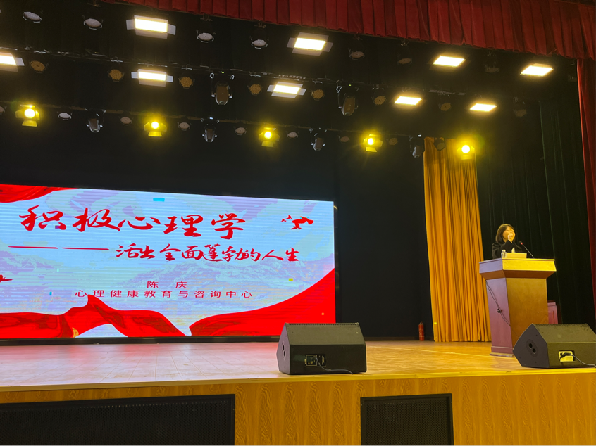 2023年11月9日19:00,milan米兰官网_米兰(中国)心理中心在学术交流中心成功举办了“积极心理学”讲座活动。本次讲座由心理中心主任陈庆主讲,近700名来自于八个学部的学生观看了此次讲座