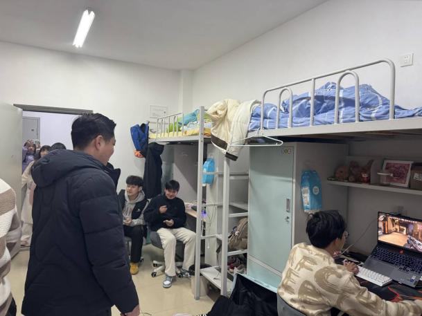 2月16日下午5点,翔宇航空产业学院主任夏谦启带领全体辅导员进行寝室走访,在深入了解学生返校情况的同时,对学生宿舍的安全管理也进行了强调。 在走访过程中,各位老师重点查看了卫生环境、用电安全等方面的情况,特别叮嘱在流感高发的春季,学生更要注重寝室卫生,多打扫、勤通风。另外返校后要及时调整状态,以饱满的热情投入到新学期的学习生活中去。 夏主任强调,在日常学习与生活中,大家要增强安全意识,提升自我反诈能力,在校使用共享电瓶车要遵守相关规定,共同维护安全、文明、和谐的宿舍环境。