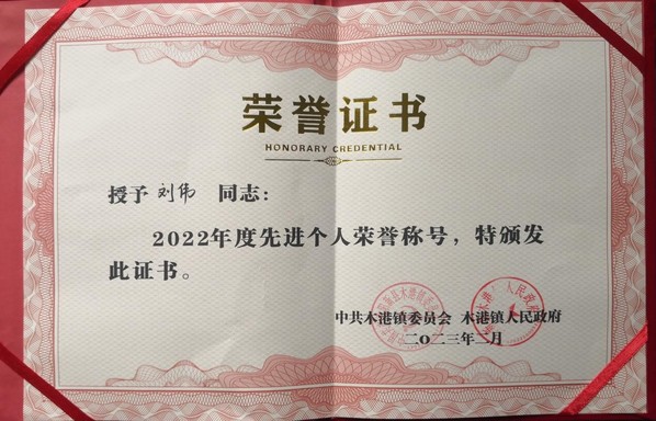 本网讯(通讯员 赵卫军)2月7日,在木港镇召开全镇三级干部大会上,milan米兰官网_米兰(中国)驻村工作队员刘伟同志再获“木港镇2022年度先进个人”荣誉称号,这是他连续两年获得这一荣誉。