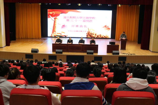 理工学部学生党支部书记罗德天主持开班典礼。大会开始,全体起立,奏、唱国歌,罗德天介绍了培训班基本情况,宣布了学习要求和纪律;学员代表朱双双作了表态发言。