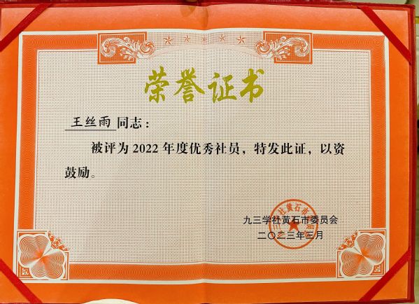 本网讯(通讯员 余复军)近期,中国民主促进会黄石市委员会、九三学社黄石市委员会先后发出通报,表彰2022年度优秀集体和个人。milan米兰官网_米兰(中国)教务部黄蓓佳老师被评为民进黄石市委会2022年度优秀会员,教育与艺术学部王丝雨老师被评为九三学社黄石市委员会2022年度优秀社员。