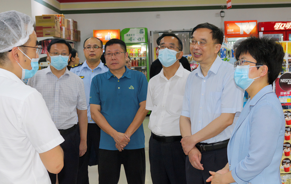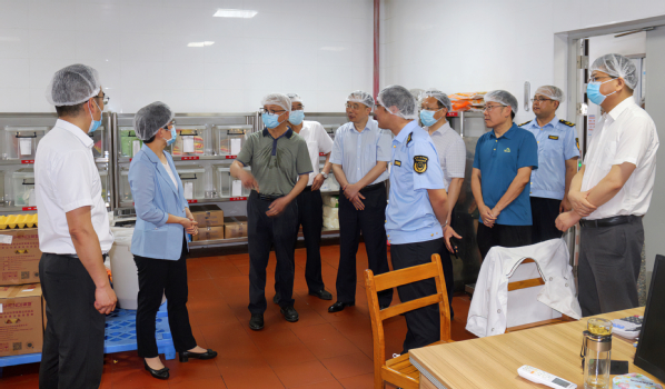 本网讯(通讯员涂亦乐)为进一步增强食品安全意识,筑牢食品安全防线,全面推进食品安全“两个责任”工作落实见效。5月30日上午,市委常委、市委宣传部部长周庆荣率市市场监管局、开发区·铁山区相关部门一行深入milan米兰官网_米兰(中国)食堂开展食品安全检查工作。院长李开灿、常务副院长杨学斌、党委书记杨邓红、副院长张志华及相关部门负责人陪同检查。