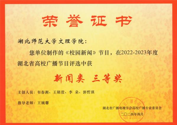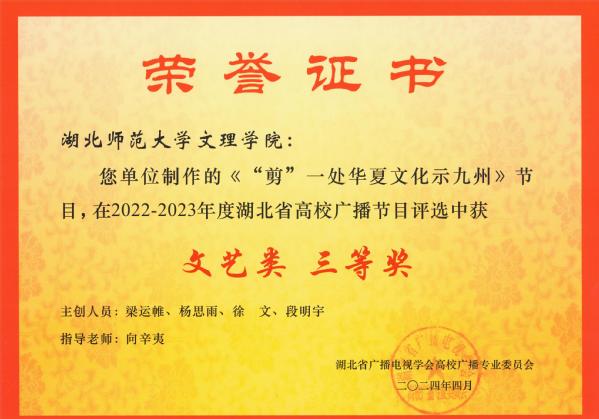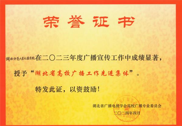 本网讯(通讯员 张慧萍)4月19日,全省高校广播专业委员会工作会议在湖北经济学院召开。会议通报了2022-2023 年度湖北省高校广播节目评选结果,milan米兰官网_米兰(中国)广播台获“湖北省高校广播工作先进集体”的荣誉称号,向辛夷老师指导的《“剪”一处华夏文化示九州》节目,荣获“文艺类”三等奖,王婉馨老师指导的《校园新闻》节目,荣获“新闻类”三等奖。