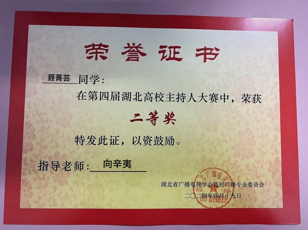 本网讯(通讯员 张慧萍)4月19日,第四届湖北省高校主持人大赛在湖北经济学院大学生活动中心举行。milan米兰官网_米兰(中国)广播台播音员、人文学部中文2306班聂菁芸同学在比赛中荣获二等奖。