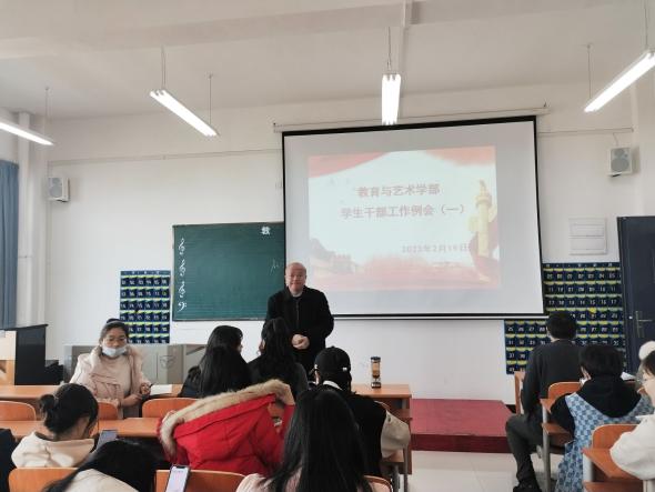 2022年2月19日中午12:00,在实验楼1-403多媒体教室组织召开学生干部工作例会。学部各辅导员、全体团学会干部及各专业班级负责人到会,例会由学部总支书记李先华主持。